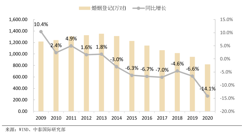 婚庆市场是钻石主要的消费场景,而据民政部门统计,近年来我国结婚登记数呈逐年降低趋势,2018-2020年我国结婚登记对数为1013.94、927.33、813.10万对,整个行业的需求正在下降。