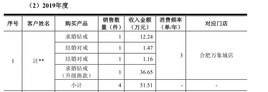 2019年度,一位消费者选择了升级换款服务,从一款价值12.24万元的钻戒升级为36.6万元的钻戒