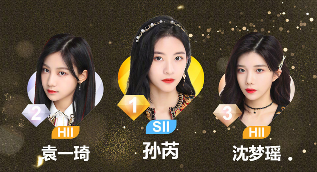 第二名及第三名则是次世代小偶像袁一琦与沈梦瑶。两人曾以黑喵CP崛起,闹掰后走上了当年李艺彤与黄婷婷的老路。明年如果还有九选的话,估计这两位将会如五选“卡黄”争顶一样,上演帝后之争的2.0版本。