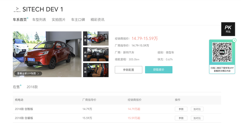 据界面记者观察,新特YOUNG光小新的外观和2018年6月上市的新特微型电动车SITECH DEV1颇为相似。后者当时定价为14.79到15.59万元,续航里程为305公里。除了SITECH DEV1,新特还曾上市过一款名叫启能GEV1的微型电动车。