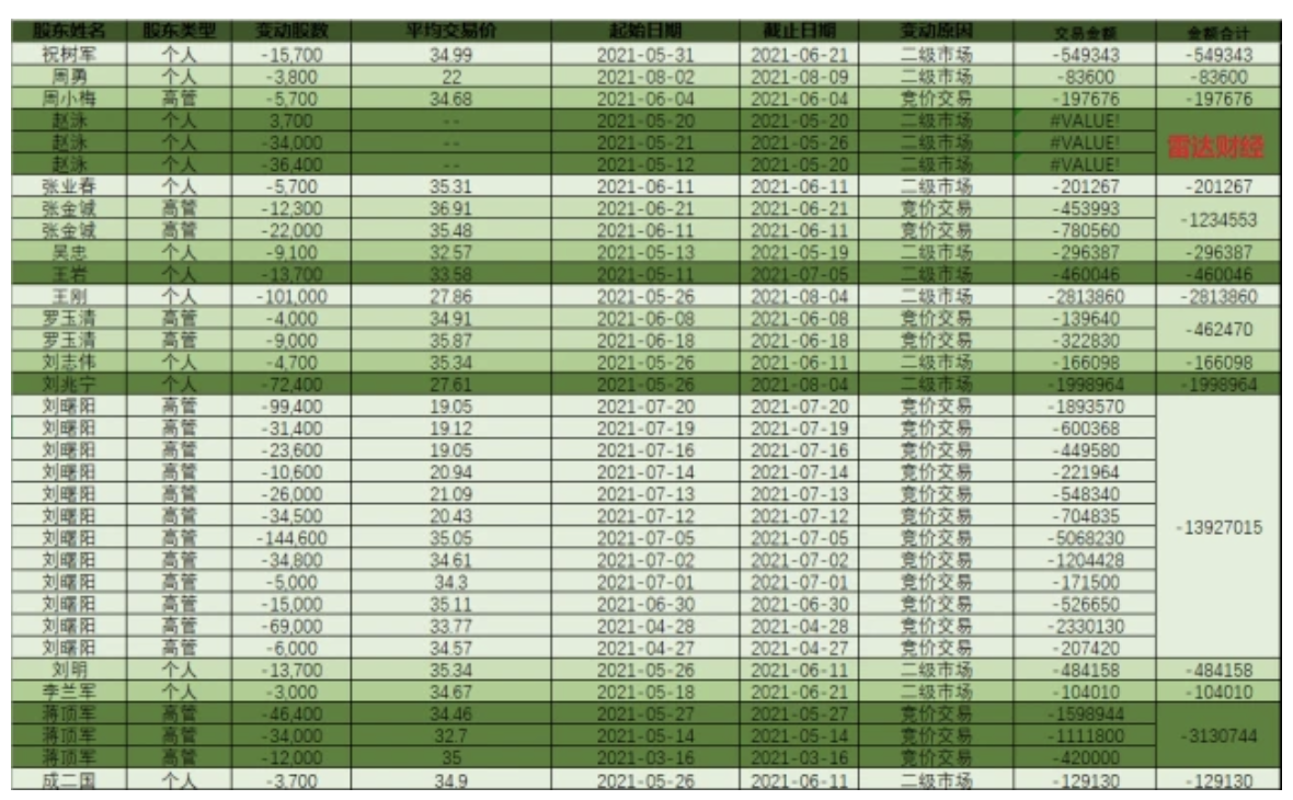 年内多位重要股东减持,董事长套现超千万