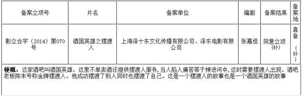 除了光线传媒以及邓超团队正在拍摄的《从你的全世界路过》,作者张嘉佳还自编自导了《酒国英雄之摆渡人》(简称“摆渡人”),同样改编自这部小说里的故事。两部电影备案的时间都是在2014年。