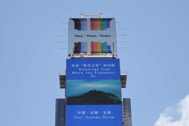 云南的城市形象宣传片集体亮相美国纽约时报广场“中国屏”。(7月1日摄)