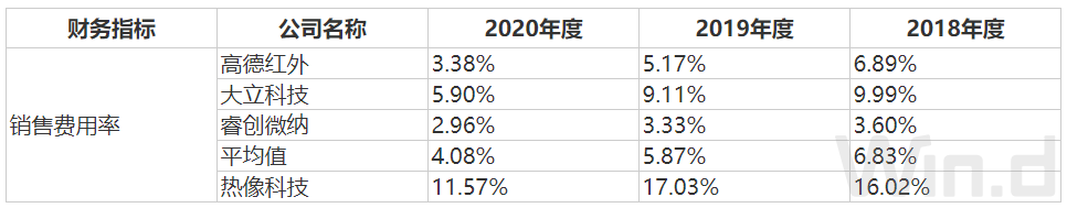 另外与同行公司相比,热像科技业务规模尚小,处在快速发展阶段,为提升产品销量和市场占有率,公司不断扩大销售团队,加大品牌宣传力度,在市场推广方面投入较大,预计这一情况还将持续。