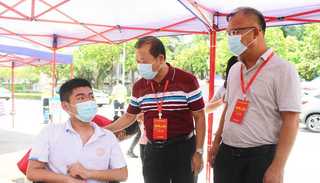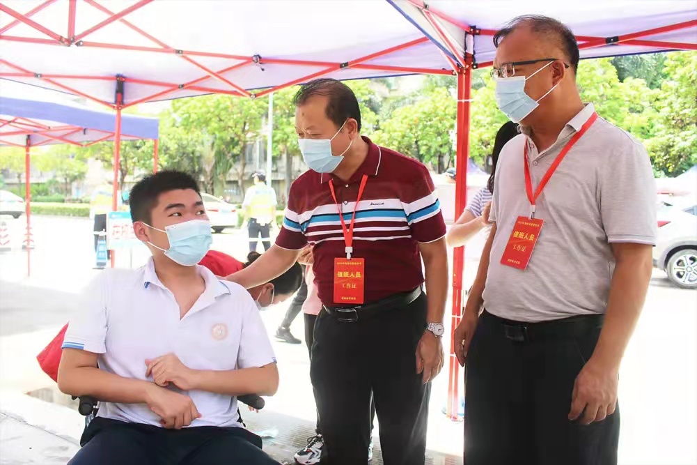 (文/图 郭名涛 唐铭慰)6月7日,海南省残联党组成员、副理事长林世闻带领相关人员前往海口市实验中学高考考场,鼓励残疾考生轻松应考、奋力一搏。今年海南共为15名参加高考的残疾人考生提供特殊便利服务。