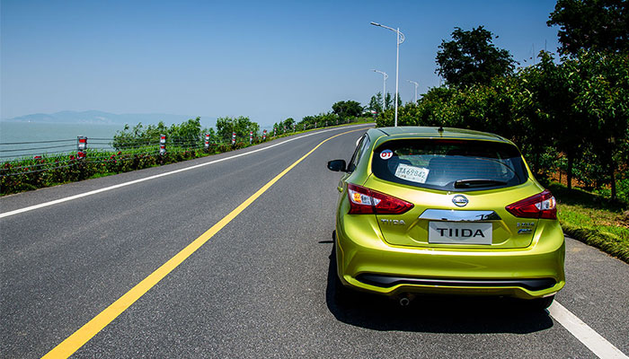 除了在起步阶段动力响应略有迟缓之外,中后段提速还是比较及时。新TIIDA在底盘调教上更偏向软的一面,这也和都市车定位比较符合。加上以平顺性著称的CVT变速箱,行驶在风景秀丽的太湖沿岸,舒适感油然而生。