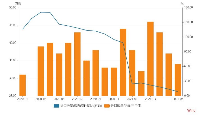 从海关数据来看,我国进口猪肉仍呈增长趋势。去年我国单月进口猪肉的增速在140%左右,今年在高基数的情况下并未出现下滑,而是依然维持20%左右的增速。