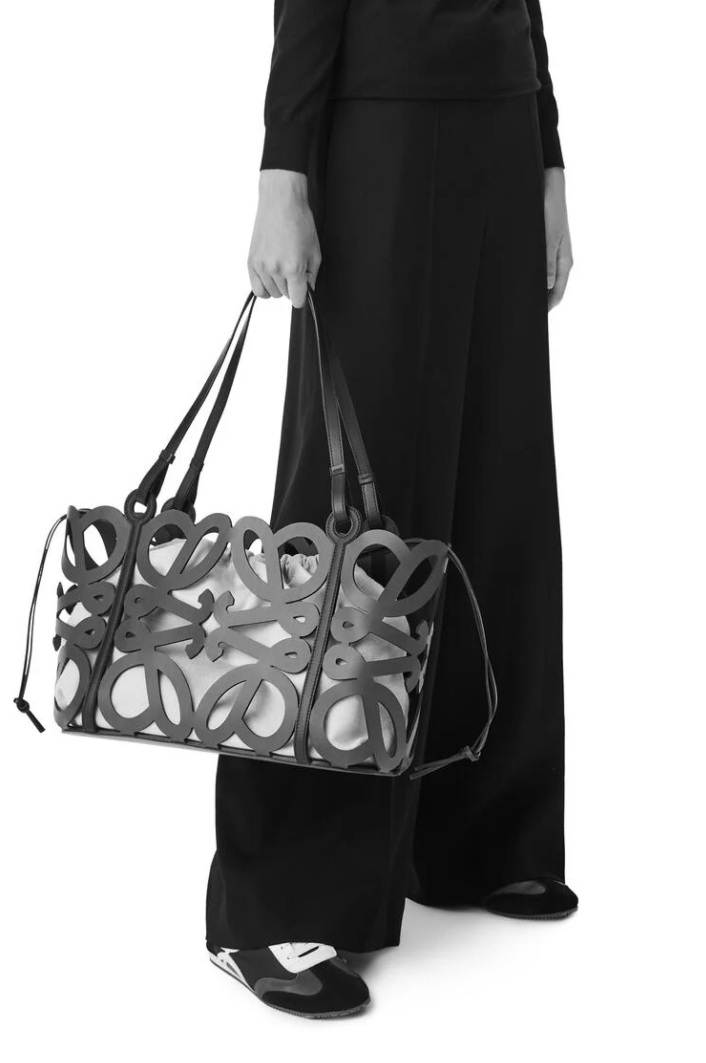 Anagram Cut-Out Tote手袋以镂空设计重新演绎品牌标志性的Anagram图案,呈现出雕花般的效果,精致又独特。朋友们也无需担心这样的镂空设计会导致装在其中的小物件掉落,因为LOEWE还贴心地随赠了一个棉质布袋,让你的贴身小物们更加安全,并且增添了设计的层次感。