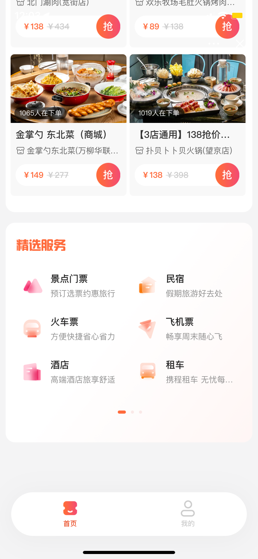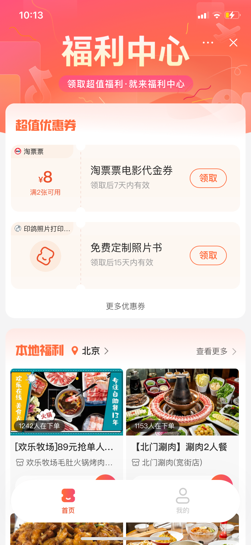 而被看作是直接对标美团团购和外卖的项目,则单独放在了“本地福利”板块。目前以优惠团购的形式为主,且优惠力度很大。