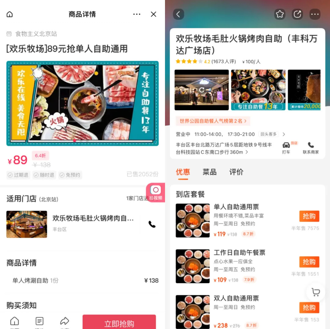 左图为抖音团购,右图为美团团购,图/App截图