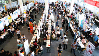 4月末,2016年应届毕业生招聘渐入尾声。比起大型招聘会,这场招聘会规模显得小了不少。80家公司的招聘窗位依序隔出的通道中,摩肩接踵的应聘者似乎都带着背水一战的决心。不论男女,显然都经过了一番精心打扮,以使自己更富职场气质。在与招聘方的礼貌克制交谈之中,应聘者们仍有一些相似的复杂情感:急切、倦怠,期待中掺杂着焦虑。