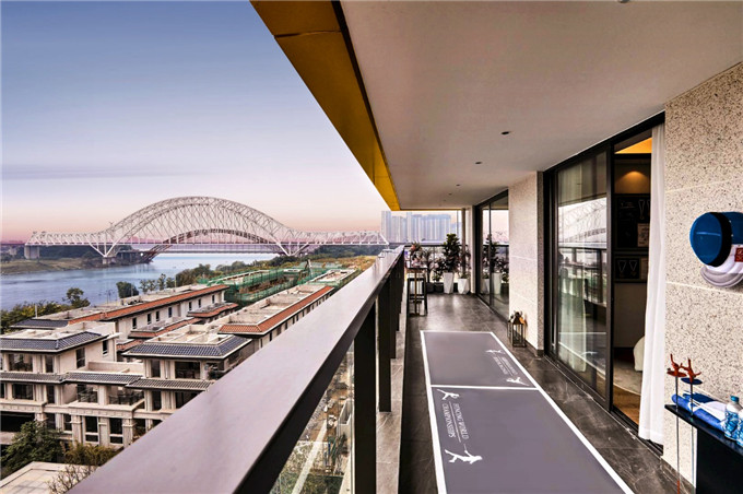 为了让一线观江的视野最大化,双珑原著设计不同高差的建筑布局,让滨江头排的景观、视野和采光得到最大程度的释放。既造就了与江无界的沉浸式体验,也划界出峰层居所的距离感。