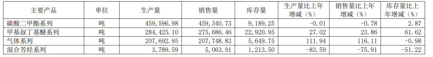 对比发现,目前石大胜华碳酸二甲酯系列产品总体产销量均高于海科新源,但两者具体产品的产销率不详。