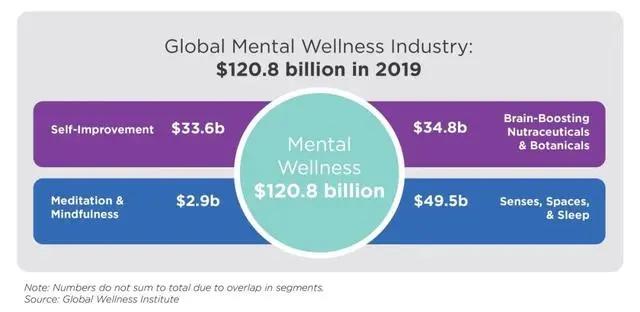 在全球,心理健康已经成为一个价值千亿美元的市场。11月9日,全球健康研究所(GWI)发布了2020了研究报告《定义精神健康经济》(Defining the Mental Wellness Economy)。
