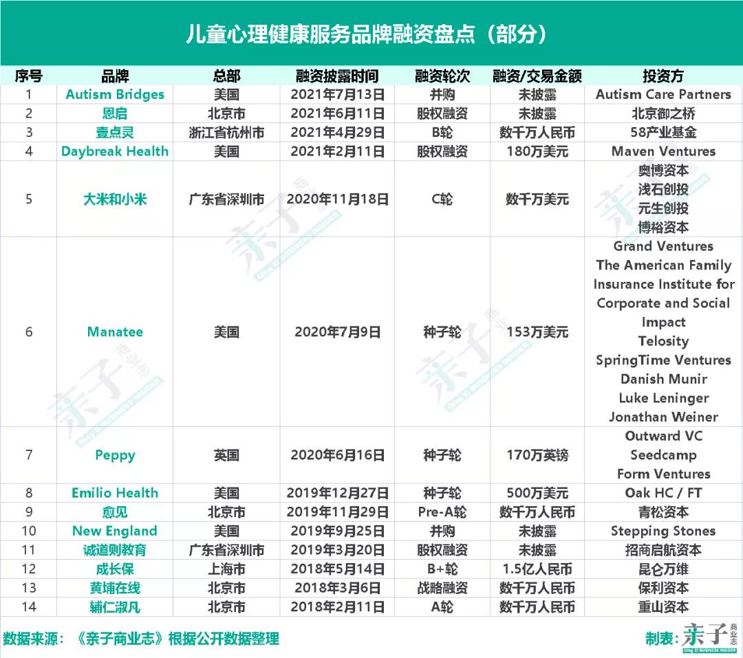 伴随儿童心理健康需求的增长,已经有多家专业健康赛道项目获得融资,主要分为两类: