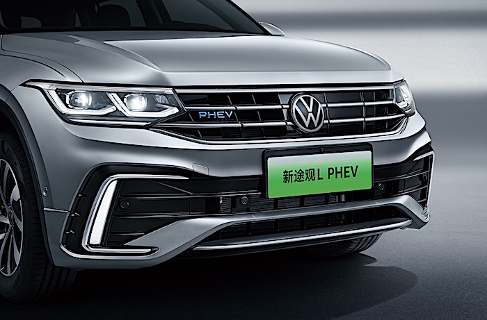 新途观L插电式混合动力版也运用了新前脸造型,外加PHEV专属徽标和I形日间行车灯,以彰显其新能源汽车的身份。