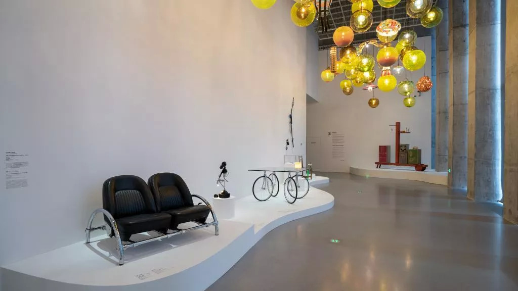 以马格利特为代表的超现实主义艺术家,把对物的怀疑和想象化为了取之不尽的视觉诗意。前半部分的最后两个空间则呈现了摄影对物的歌颂,以及设计对物的极限的挑战、对物的功能和精神属性的质疑。