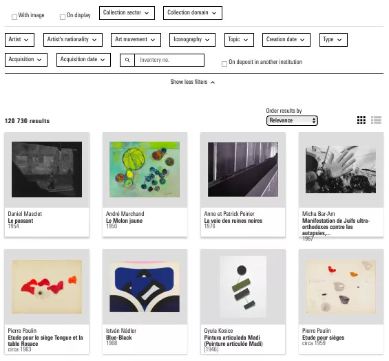 蓬皮杜数字馆藏界面,蓬皮杜艺术中心官网截图