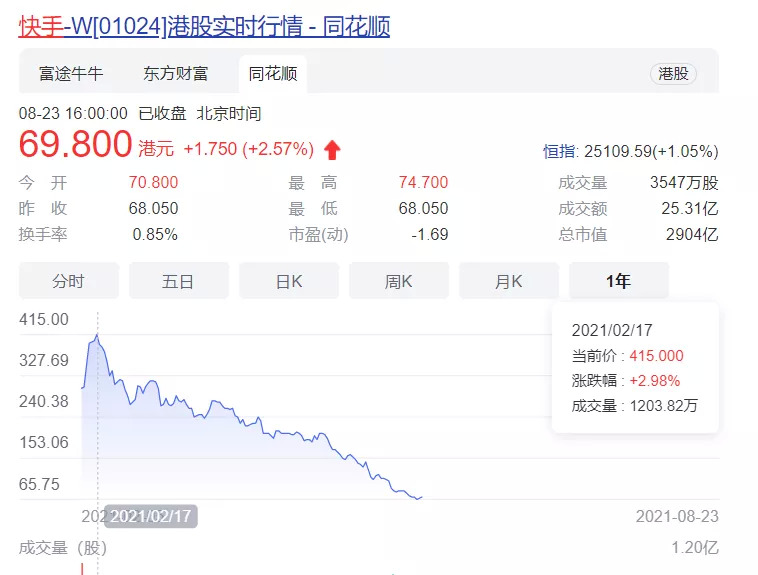今年初在香港上市的快手,上市之初市值高达1.25万亿港币,但仅半年时间,目前其市值已大幅削去80%。而近来频繁被传上市的抖音,或看到快手估值的“大缩水”,或由于中概股的暴跌,其上市计划也一再延迟。