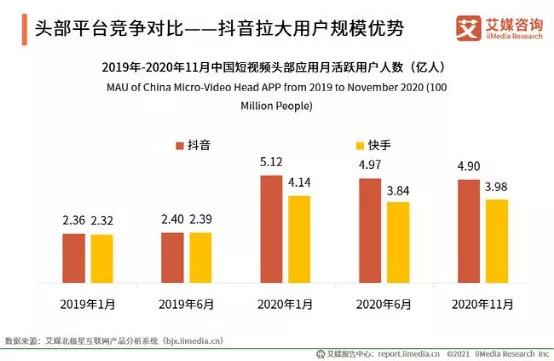 快手从成立之初就一直在去中心化,目前也在大力去头部主播化,并对头部内容进行限流,来保证新人视频主的曝光量,因此,用户增长一直都是快手的优势。