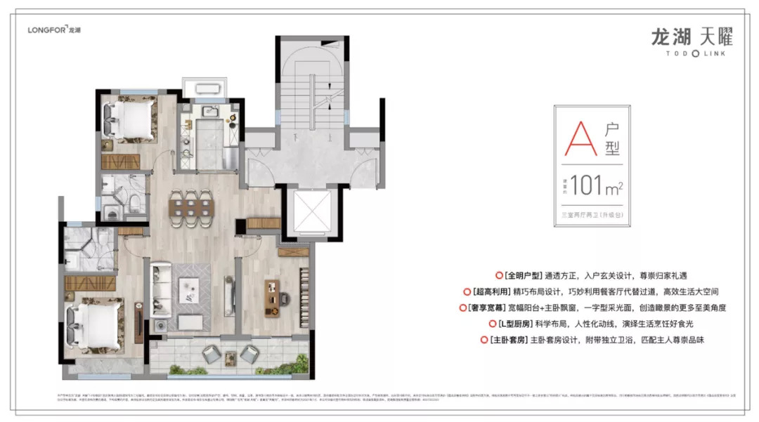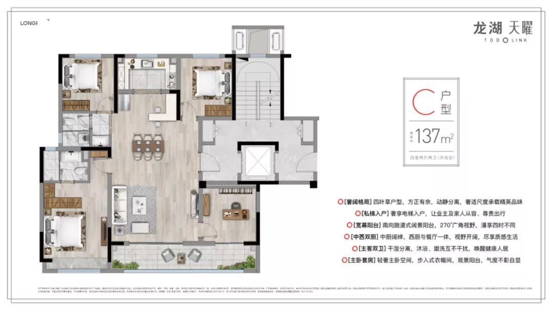 目前,龙湖天曜物价已批,全装修价格约3.05万/平,升级包2100元/平,首付预计3成起,预计近期首开6栋楼,分别为15、16、18、19、20、21号楼,共308套装修房源,户型建面约101、137㎡。