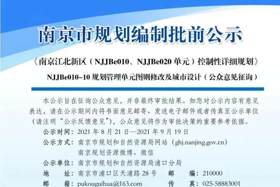 南京江北新区NJJBe010-10规划管理单元图则位于浦口区老山以南,地块北至基隆路,南至宁合快速路,西至五华路,东至建设路,用地面积约24公顷。