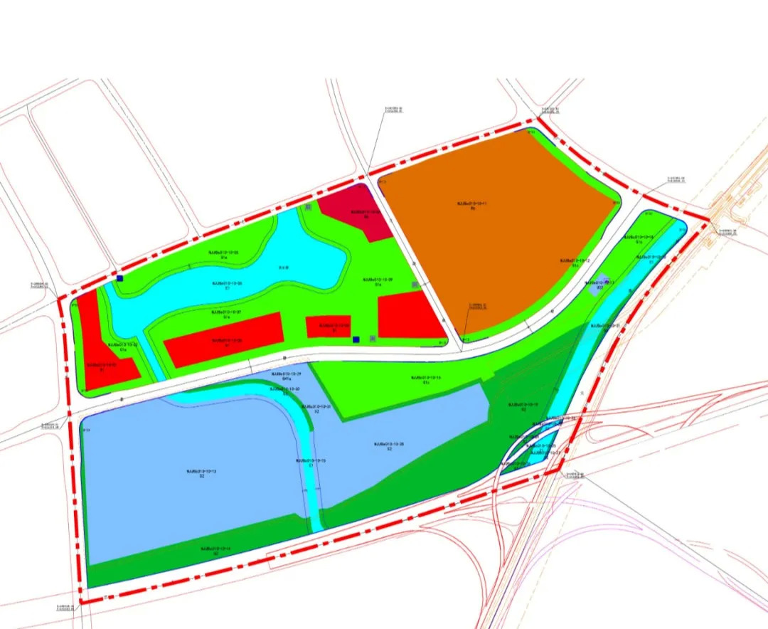 在原10-13地块内增加一条东西向的支路,将地块划分为南北两部分,支路北侧修改为二类居住、综合公园用地,支路北侧目前为空地。