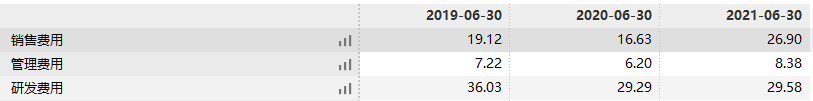 费用端成为第二季度拖累业绩的主要因素。金山办公在2021第二季度的销售费用、管理费用和研发费用比例都有所上升,其中销售费用比例上升最多,从2020第二季度的16.63%增至2021第二季度的26.9%。