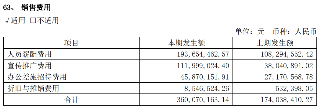 销售费用拆细后发现,金山办公人员薪酬费用和宣传推广费用都有较大幅度增长。