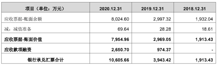 2018年、2019年,奉天电子持有银行承兑汇票分别为1913.43万元、3943.42万元,到2020年奉天电子银行承兑汇票金额爆增168.83%至1.06亿元。申报稿显示,2020年应收票据账面余额前五名分别有一汽集团、上汽大众、陕西重汽、长城集团、东风集团,五大客户占银行承兑汇票账面余额的96.52%。