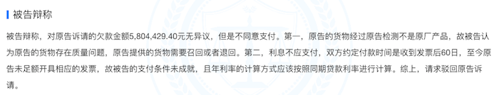 天眼查显示,奉天电子与杰慕林的一审判决书中,奉天电子作为被告的辩称并未提到关键人物昝庆玲和相关采购价格有失公允的情况,而是辩称原告杰慕林的货物经过原告检测不是原厂产品,故认为杰慕林的货物存在质量问题,杰慕林提供的货物需要召回或者退回。