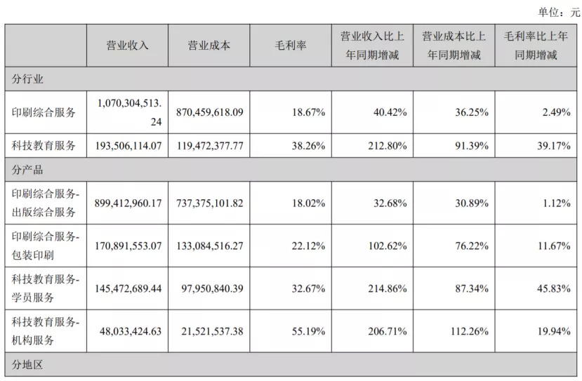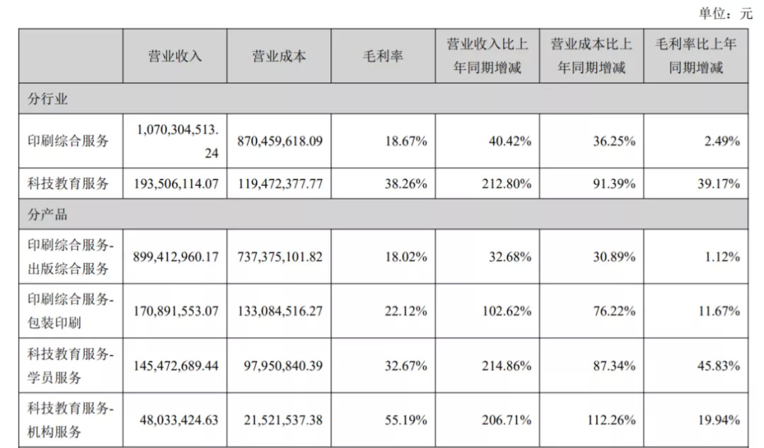 具体分业务来看,主营业务的印刷,其成本增速相对稳定,而教育业务的成本增速明显更快。比如,面向学员的服务业务,其营业成本9795万元,同比增加了87.34%;面向机构的服务业务,其营业成本2152万元,同比增加了112.26%。