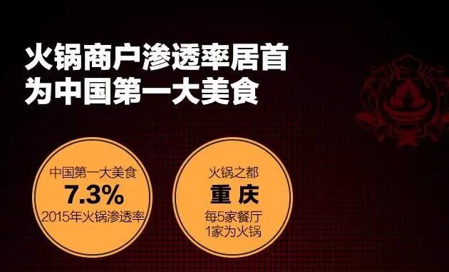 你有没有过这样的感觉,路边想吃点别的且需找一会儿,但你要是想吃火锅,那就是分分钟的事儿,要不都说火锅是“中国第一大美食”呢。2015年年底,新美大发布了《中国火锅大数据报告》,数据显示,2015年火锅商户渗透率为7.3%,并且全国火锅门店数量比去年增长了70%,总数超过了35万家。