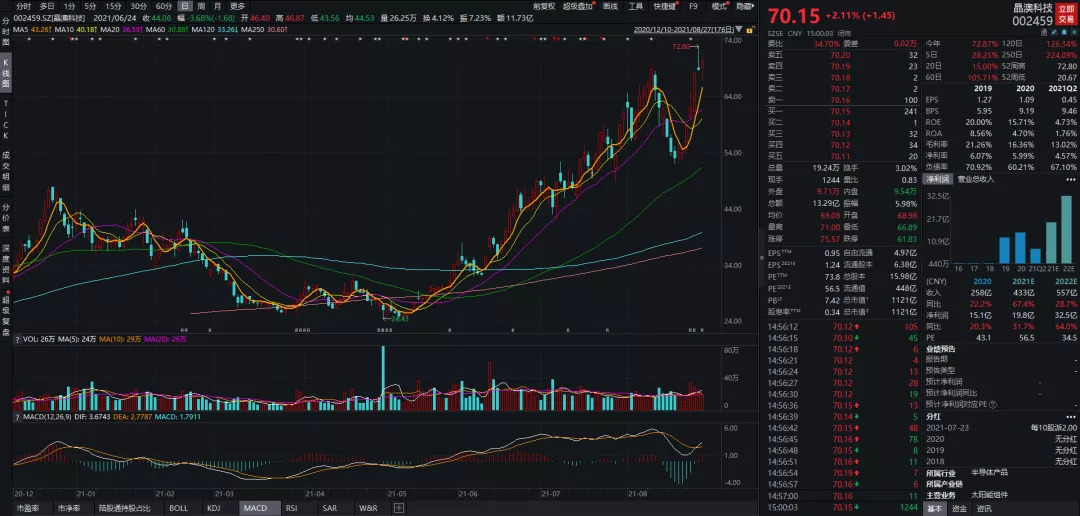最近一个阶段光伏股票出现了很大的行情,特别是一些二三线品种的大幅上涨,有一点去年白酒二三线品种补涨的势头。甚至某些券商和机构又开始毫无底线地吹嘘和炒作HJT,群魔乱舞,好不热闹。