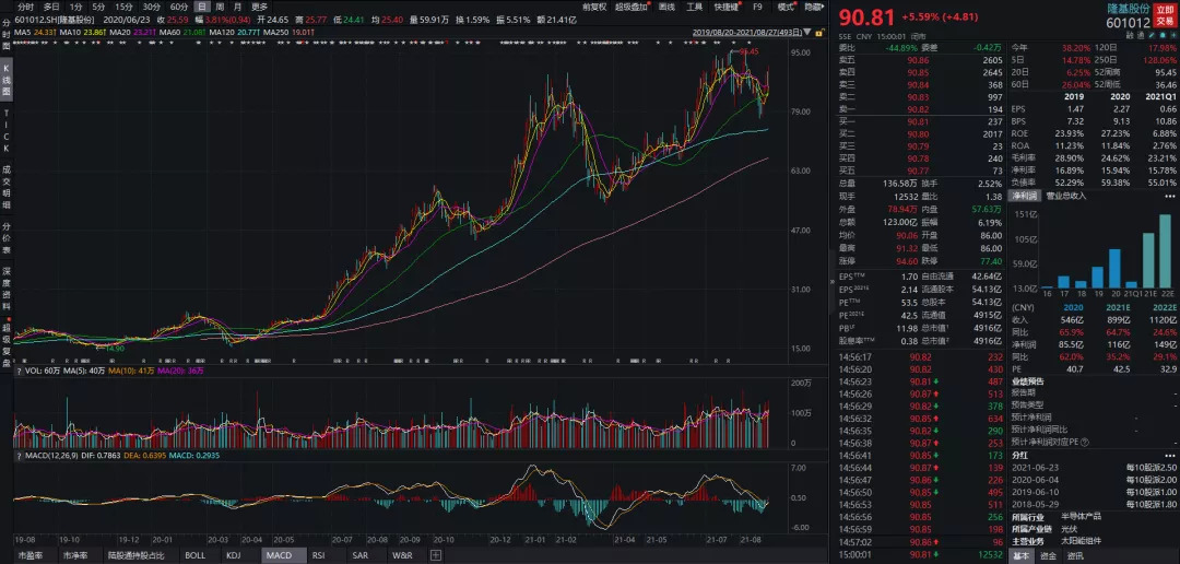 再比如,光伏巨头隆基股份估值目前不足50倍,2022年PEG小于0.65,所以我们认为在水涨船高的时候仍具备投资价值。
