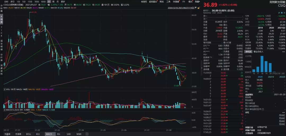 从以上的走势图,我们可以看到,今年整个中美光伏板块,中国公司走势的巨大差异(注:阿特斯起源于中国)。特别是硅料龙头大全能源(SH:688303)在A股上市后表现可谓迥异,估值差距也十分巨大。