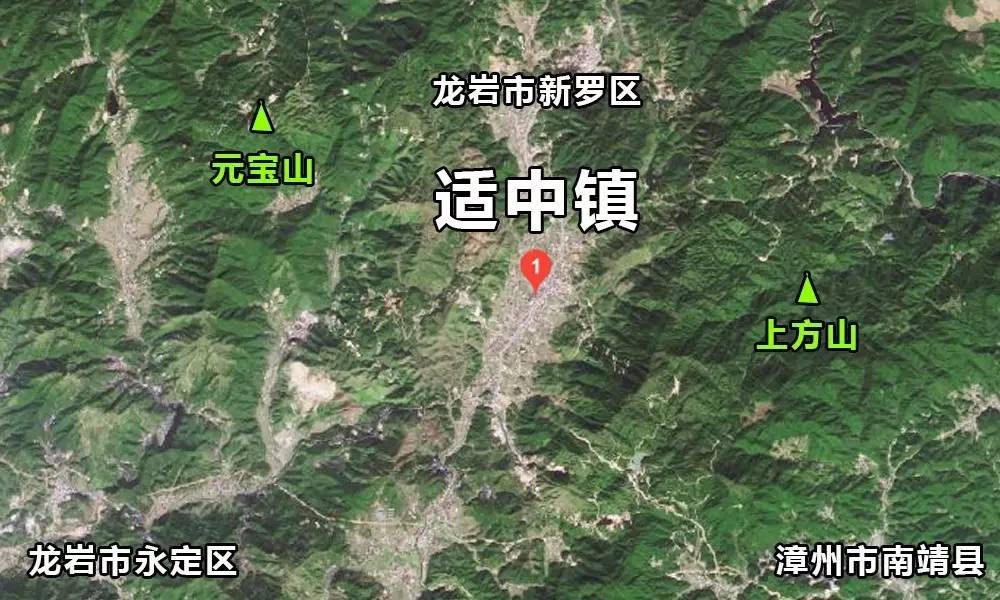 适中镇位于新罗区西南隅,距龙岩市区36公里,与永定区、漳平市和漳州市南靖县市交界,属丘陵山地的一片狭长地带,四面环山迭抱,地势独特。只有一条G319国道南北向穿行而过,成为出入该镇的必经之路。
