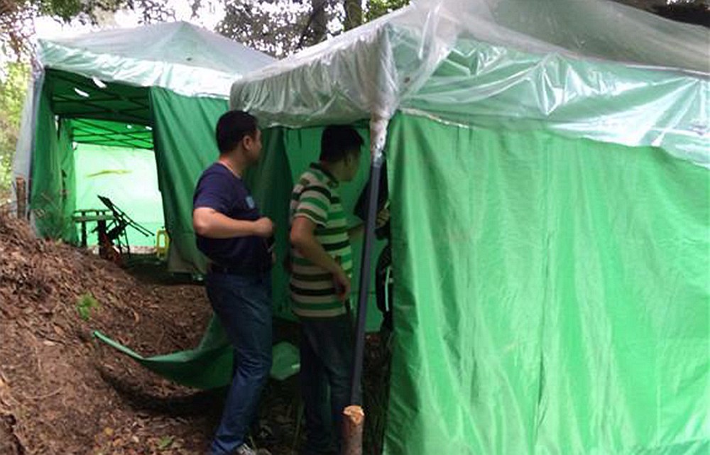 这就是从事网购诈骗的犯罪嫌疑人窝点。由于适中镇百分之九十以上地区都是茂密的山林。为了躲避打击,骗子们到深山密林里搭起帐篷,用电话和网络进行诈骗。