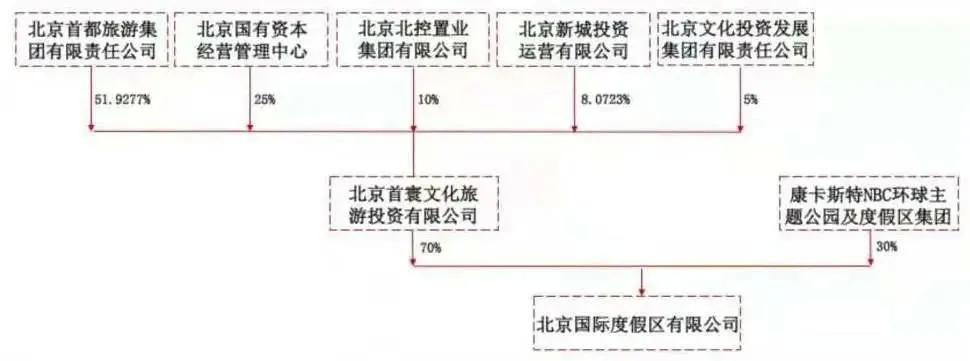 上海迪斯尼度假区的投资主体为上海申迪集团,为上海的国资平台公司,而北京环球影城的所有者为北京国际度假区有限公司,是一家由北京首寰文化旅游投资有限公司(持股70%)和环球北京业主控股有限责任公司(持股30%)共同持有的合资公司。
