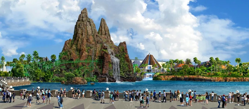 这个主题区的创作是来自著名电影《侏罗纪公园》的场景,从无到有“复活”努布拉岛。整个这个景区的概念是“在哥斯达黎加海岸外的努布拉岛上,一群恐龙因基因工程得以重生,栖息于豪华的恐龙度假区之中。