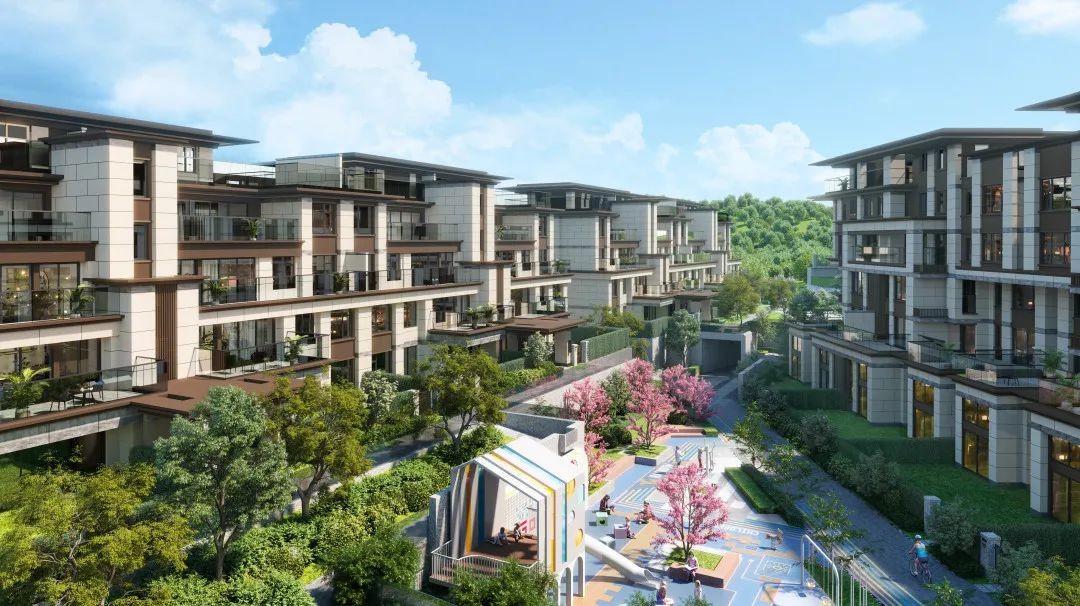 天府万科城于大城近繁华处,择址原山自然坡地,以高标准土地指标打造了【映山微墅】。映山微墅依山而建,整体容积率仅1.0,四面皆风景;采用剧院式布局,利用山体坡度的高差,通过堆叠、拉伸、退台等设计手法,巧妙地让建筑设计与自然山体、景观结合;毗邻大城核心生活圈,步行可达万科生活广场和眉山天府新区实验学校,让居者在大城繁华和自然静谧中进退自如。