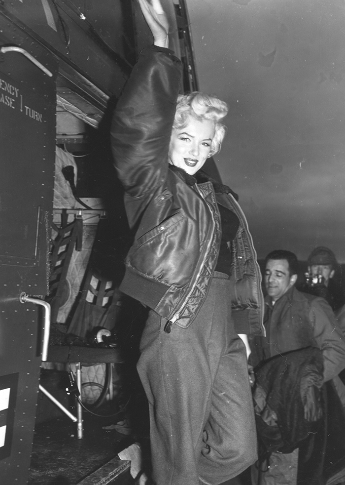 产于 1940 年的 G-1 相比 B-3 而言廓形更为贴身,Kim Kardashian 就曾经穿过没有带毛领的G-1飞行员夹克。而一件带毛领的 G-1 配合重磅数的牛仔裤加工装靴,就是复古着装顶配了。
