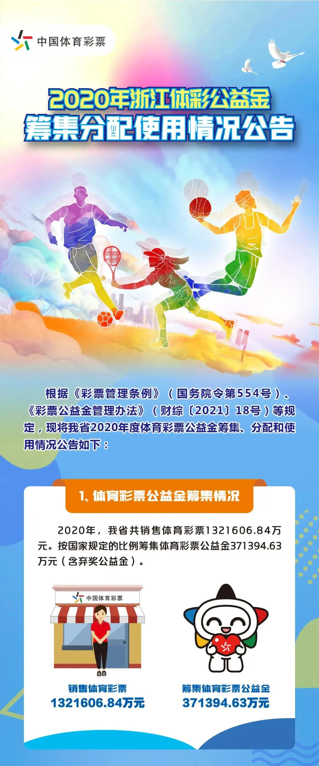 浙江体彩公益金是如何被筹集、分配和使用的?又包含哪些使用项目呢?别着急,一图读懂—2020年浙江体彩公益金筹集分配使用情况。