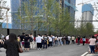 9点40分,150号到200号的购房者开始排队进场。
