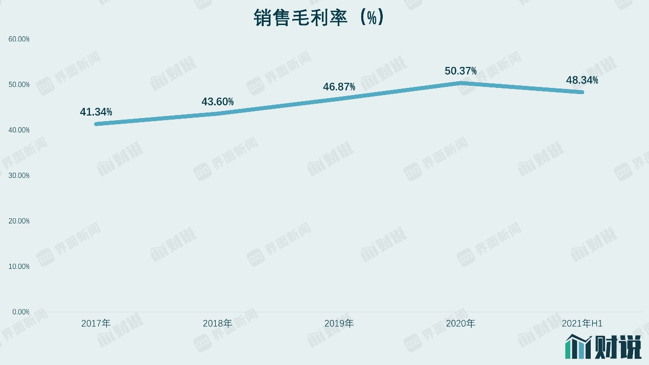 可以看到,营业成本大幅抬高致使净利润下滑,上半年万东医疗营业成本达2.56亿元,同比增加16%。这也导致毛利率有所下滑,Wind数据显示,万东医疗上半年毛利率48.34%,该指标在过去至少5年保持增长,2020年曾创50.37%新高。