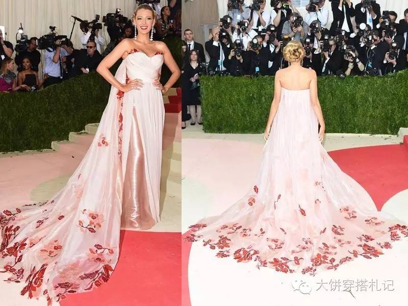 在今年的Met Gala上,在一堆金属科技混搭的怪面孔里,Blake也用一条burberry的刺绣裙美出新高度,背后看,发型也很精致。