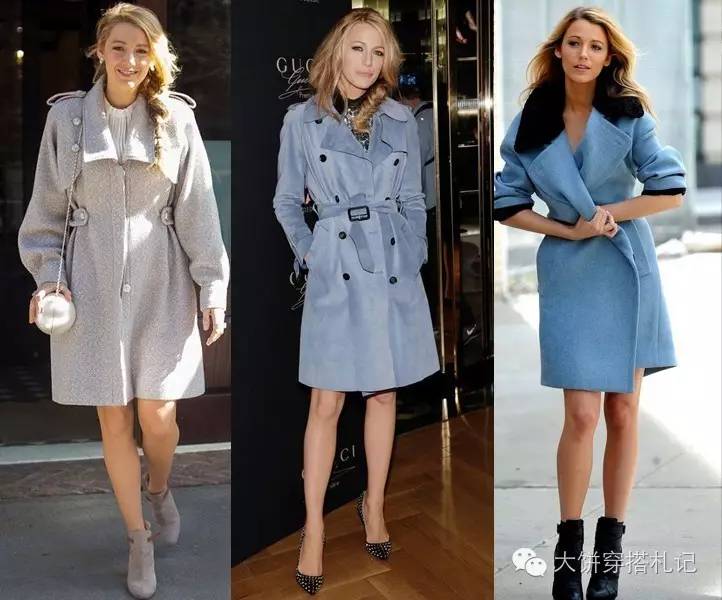 除了裙装,光腿穿各种收腰的X型大衣/风衣也是大胸妹子可以尝试的技能。只要小腿细外加有腰,各种身形用这招都可以。↓
