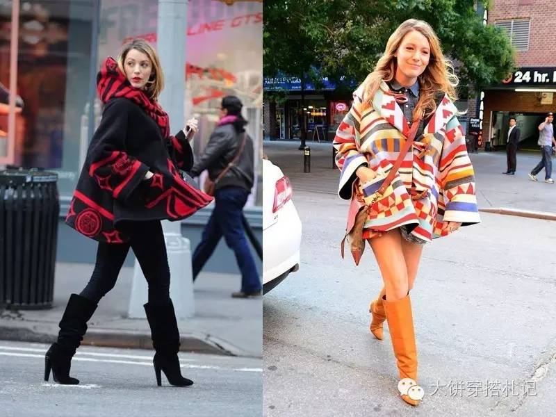 斗篷+长靴的模式是上次怀孕时惯用的招,只要你有一双细腿都能穿好看。苹果型身材的姑娘,日常穿也遮肉也是妥妥的。↓