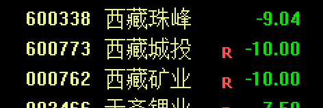 西藏矿业表现不济,也直接带着西藏城投(600773.SH)跌停,不过西藏城投在跌停板位置有过几番挣扎。另一只西藏珠峰(600338.SH)被带跌得更为不情愿,盘中多次触及跌停板价格。