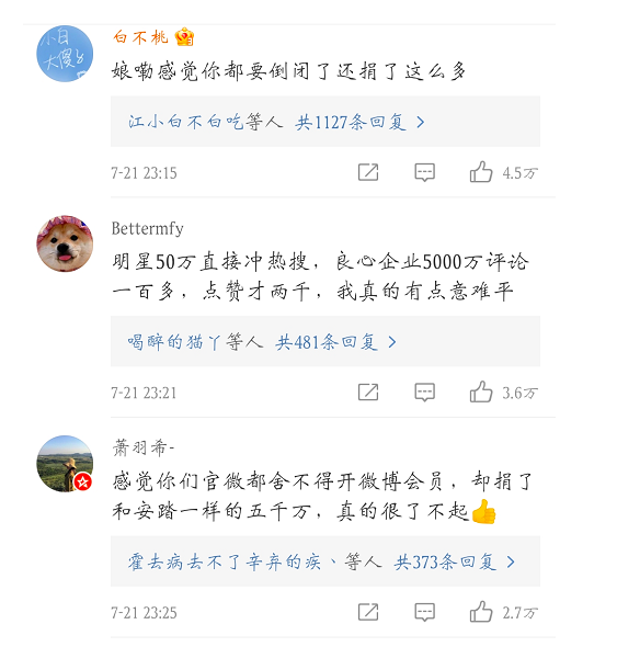 今年7月的郑州暴雨,鸿星尔克出圈,网友们纷纷在评论中表示印象中的鸿星尔克都快“倒闭”了,没想到却默默捐出了高达5000万的物资,甚至都没有宣传一下。而事实上,安踏也捐出了5000万钱物。
